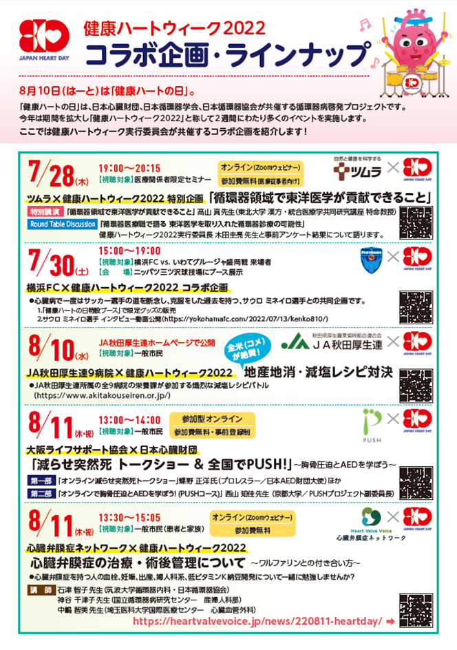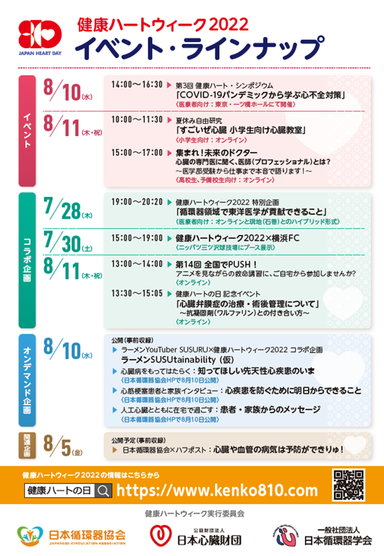2022年は日本循環器協会、日本心臓財団、日本循環器学会の三団体共催で拡大バージョン「健康ハートウィーク2022」を実施します!