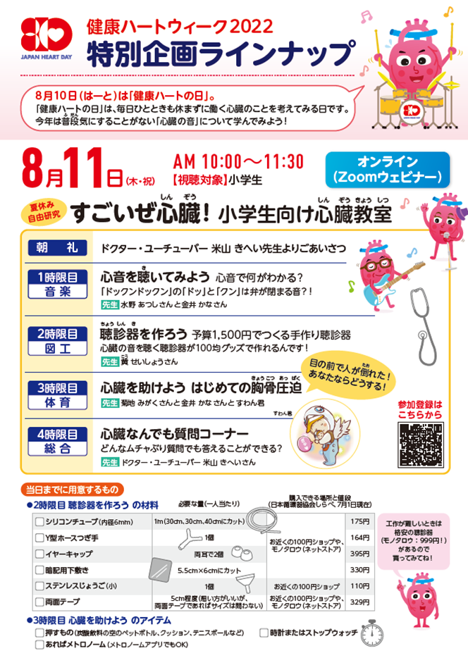夏休み自由研究 すごいぜ心臓! 小学生向け心臓教室