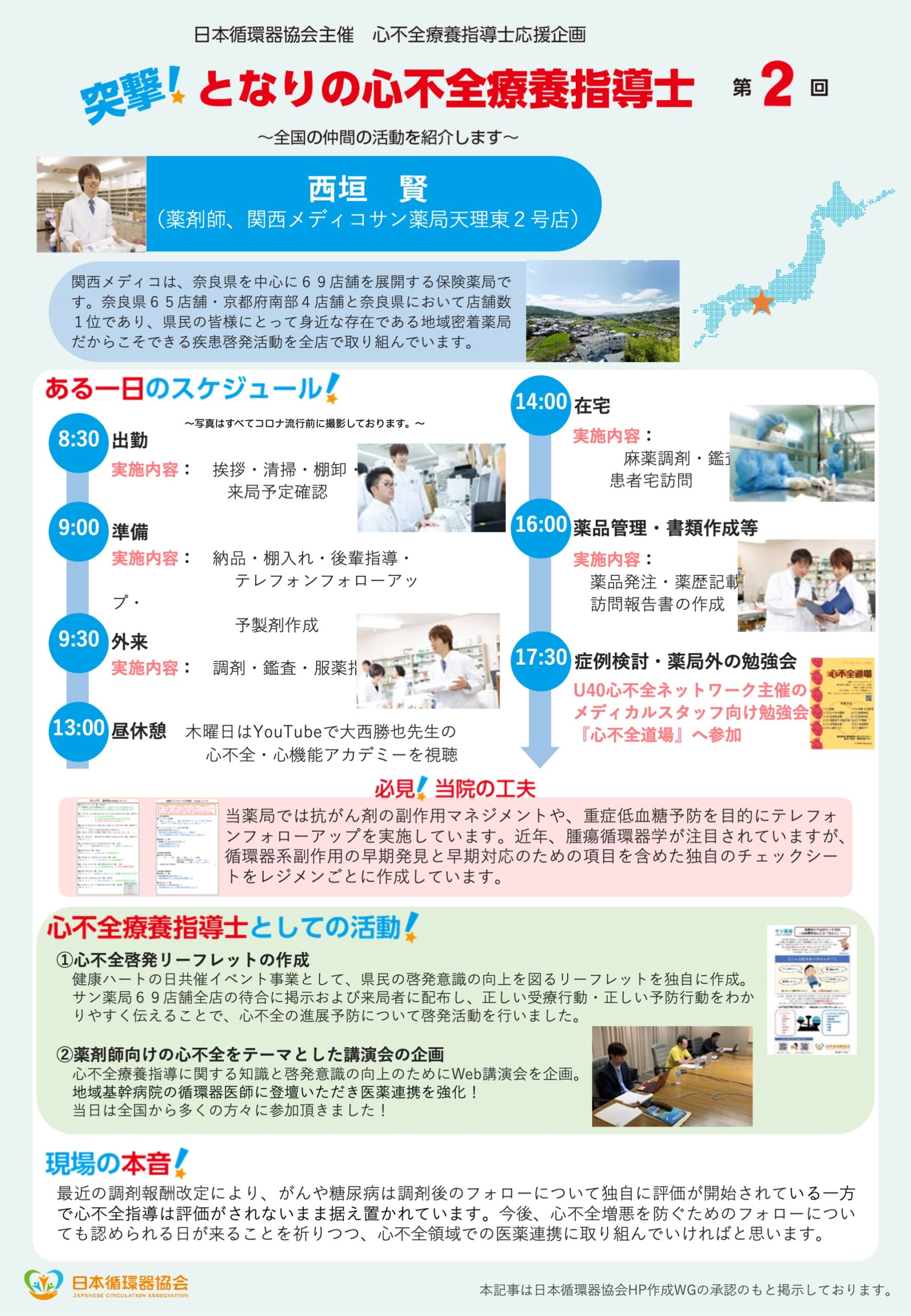 第2回となる今回は、関西メディコサン薬局 天理東2号店で薬剤師として活動する西垣賢さんを紹介します。 市中基幹病院の門前薬局で働く西垣さんはどのように心不全療養指導士の資格を活かしているのでしょうか?