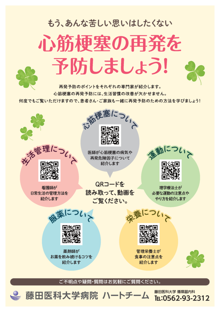 藤田医大循環器内科、入院患者用動画シリーズは下記のQRコードからアクセス。