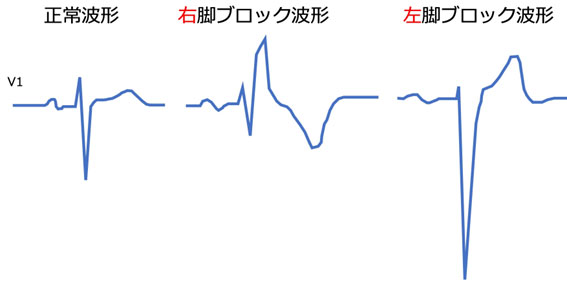 よく認められる心電図の変化で、無症状なことが多いです。「右脚」ブロックは、治療が不要なことが多いのに対して、「左脚」ブロックには注意が必要です。