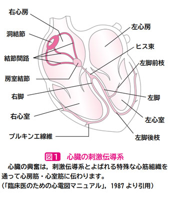 心臓は自動的に動いています。その仕組みは、まず、心臓の上側にある発電所(洞結節)が規則的に発電しています。次に、心臓全体に走っている電線を介して、心臓全体に電気興奮が伝えられます。電気興奮が伝わると、心臓の筋肉がグッと縮んで、血液を全身に送り出すわけです。