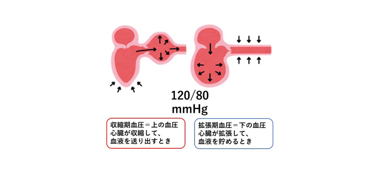 血圧とは、心臓から出る血流が血管の壁を押す圧力のことです。