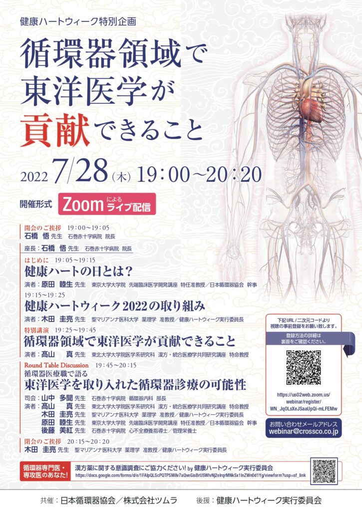健康ハートウィーク特別企画 「循環器領域で東洋医学が貢献できること」のご案内